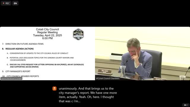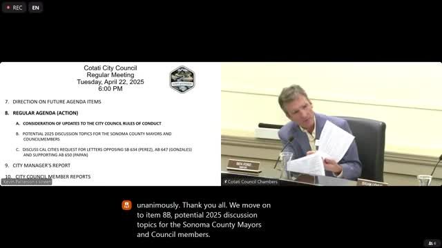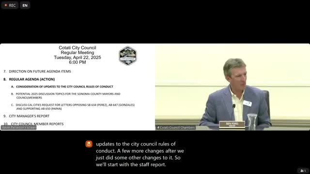 Cotati City Council unanimously adopts revisions to council rules of conduct
