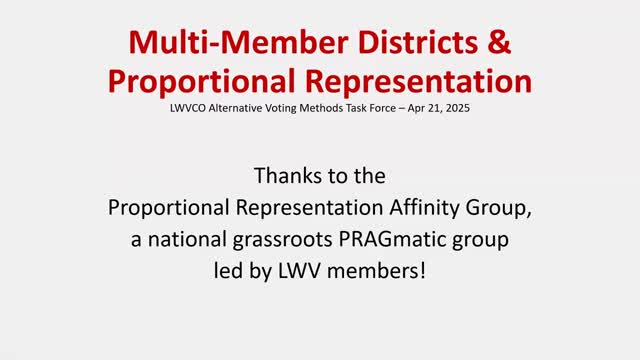 League presenters outline history, mechanics and arguments for proportional representation and multi‑member districts