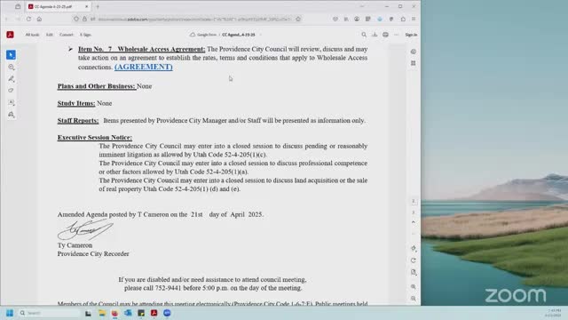 Council discusses wholesale dark-fiber agreement; action continued for more review