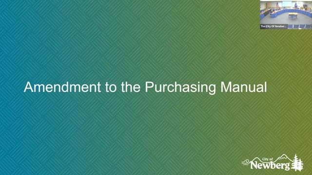Council adopts resolution aligning purchasing manual with new ERP; purchase-order threshold raised to $10,000