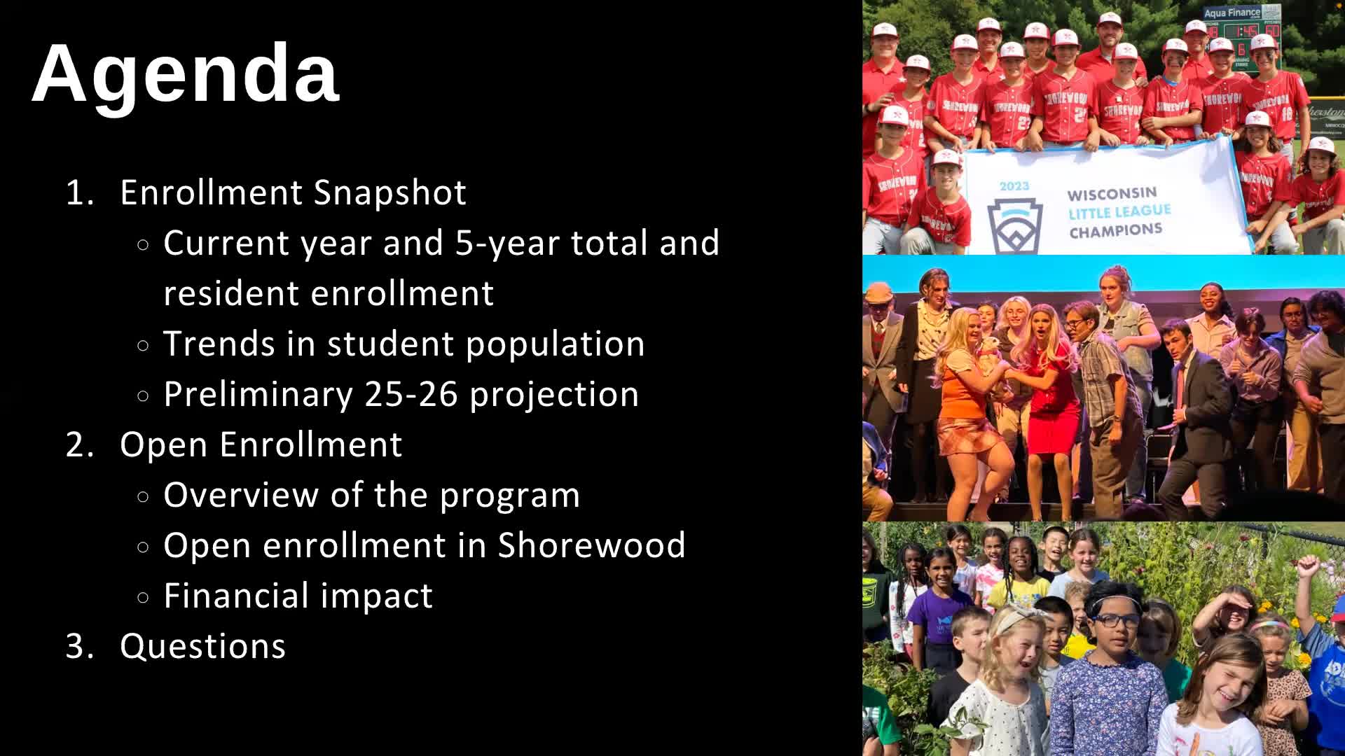 District staff brief board on enrollment trends, open‑enrollment numbers and financial impacts
