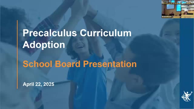 Board advances new precalculus curriculum (CPM) after teacher field testing; district plans training and textbooks purchase