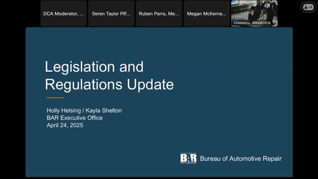 BAR staff review active bills and pending regulation packages affecting smog check, storage and battery disposal