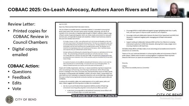 Accessibility committee to revise draft letter urging Parks–Police collaboration on off‑leash dogs
