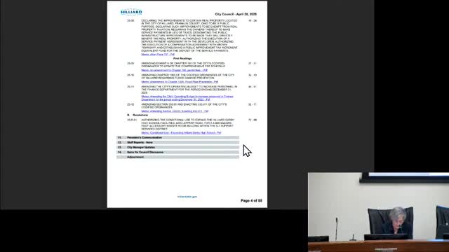 Hilliard council approves TIF-style service-payment agreement, accepts sewer work and OKs school weight-room addition