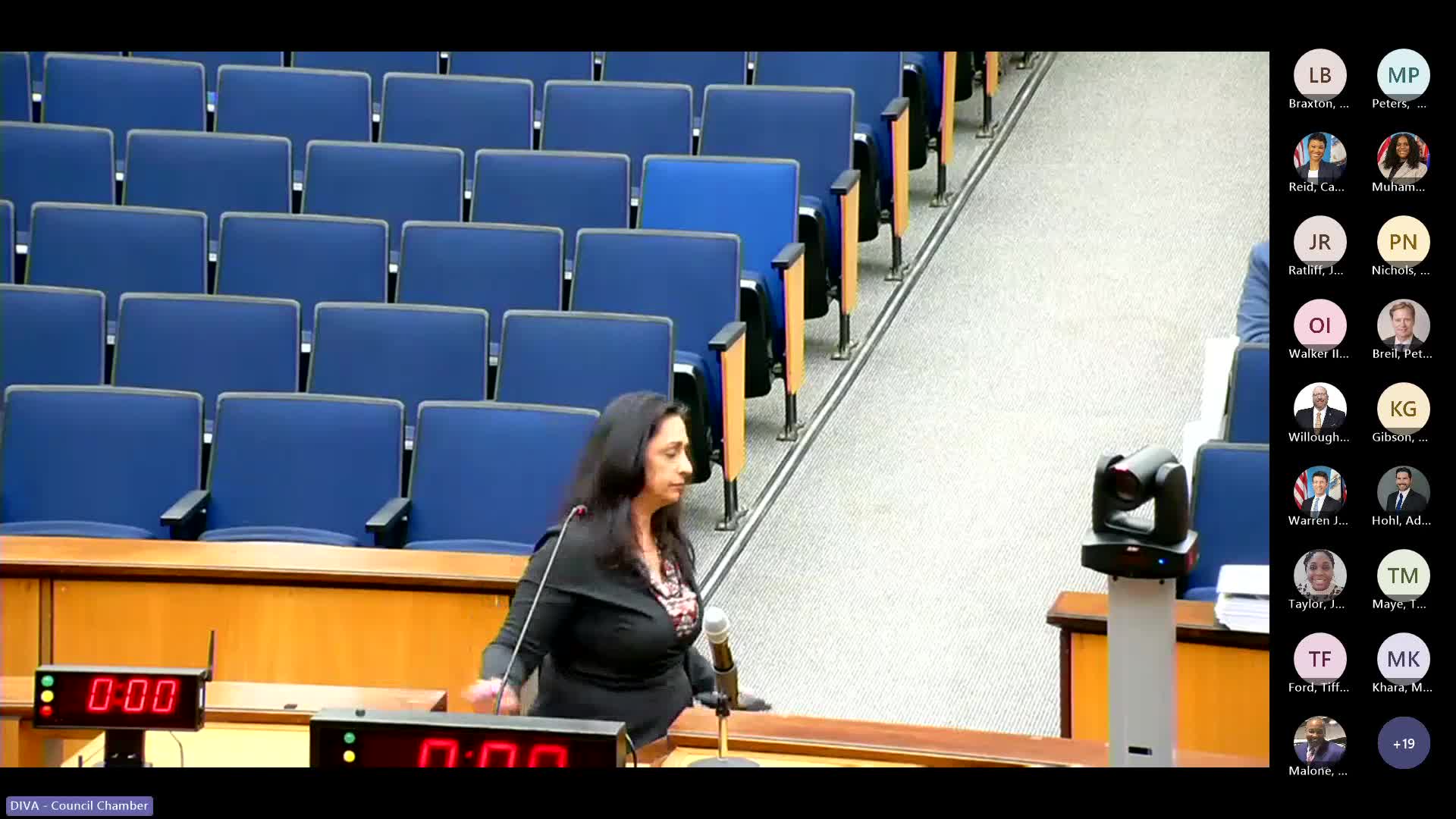 Council clerk reports multiple continuances and committee recommendations; council votes to hold closed session on appointee performance
