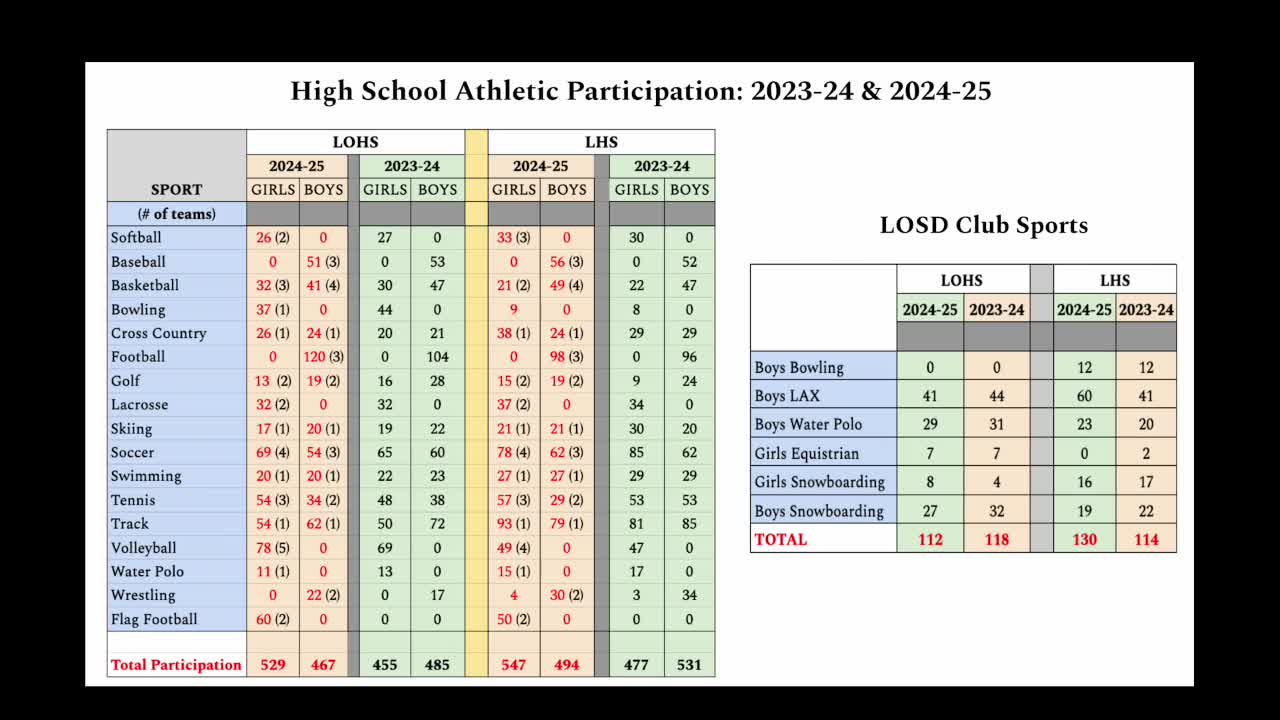 Athletics, performing arts and unified‑sports participation reviewed; girls' flag football growth noted