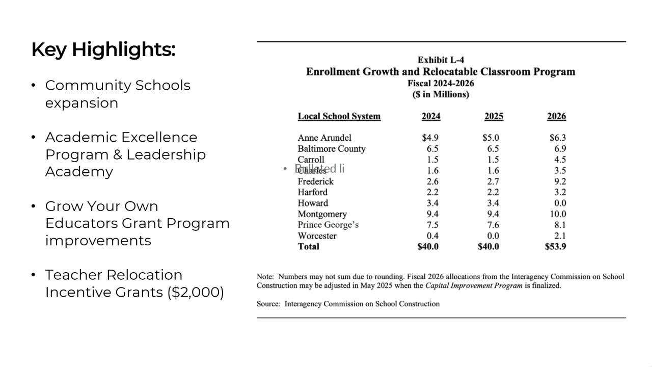 Committee briefed on education changes: collaborative time delayed, local shares shift under Maryland blueprint