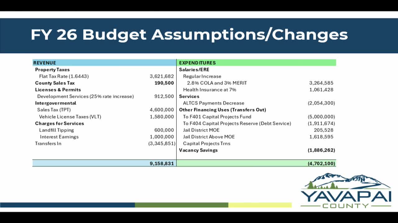 Yavapai County manager frames FY26 budget around holding property tax rate flat at 1.6443