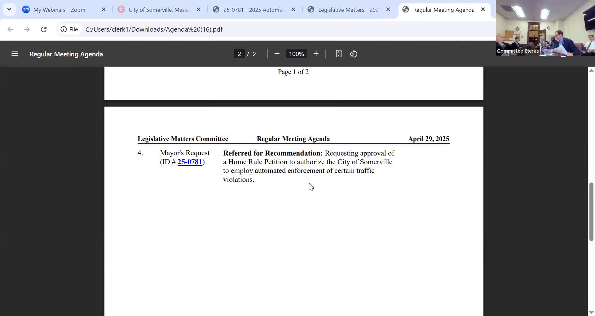 Committee recommends Somerville home-rule petition for automated traffic enforcement; committee to refine implementation and equity details