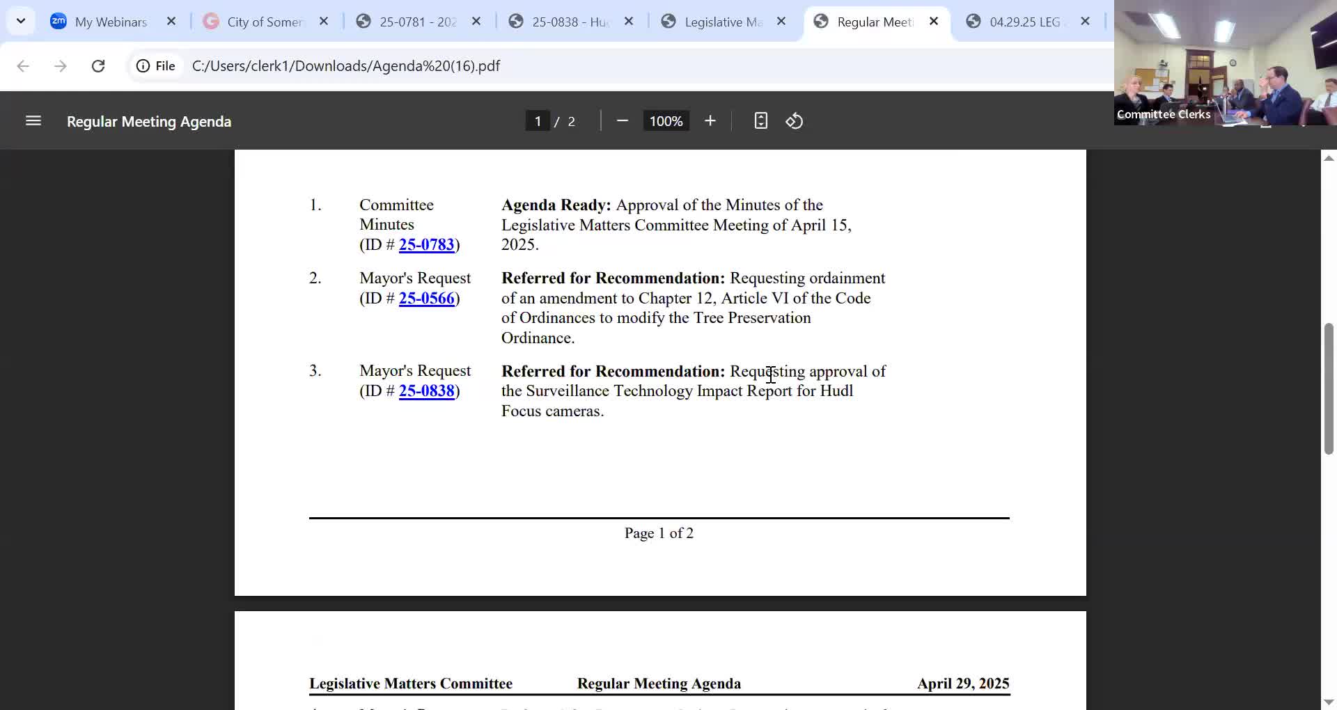 Committee recommends approval of athletics cameras impact report; audio disabled, students given view-only access
