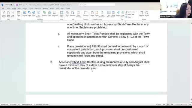 Planning Board adopts warrant comment on short‑term rental articles; says alternate proposal 'could be a viable alternative' with further work