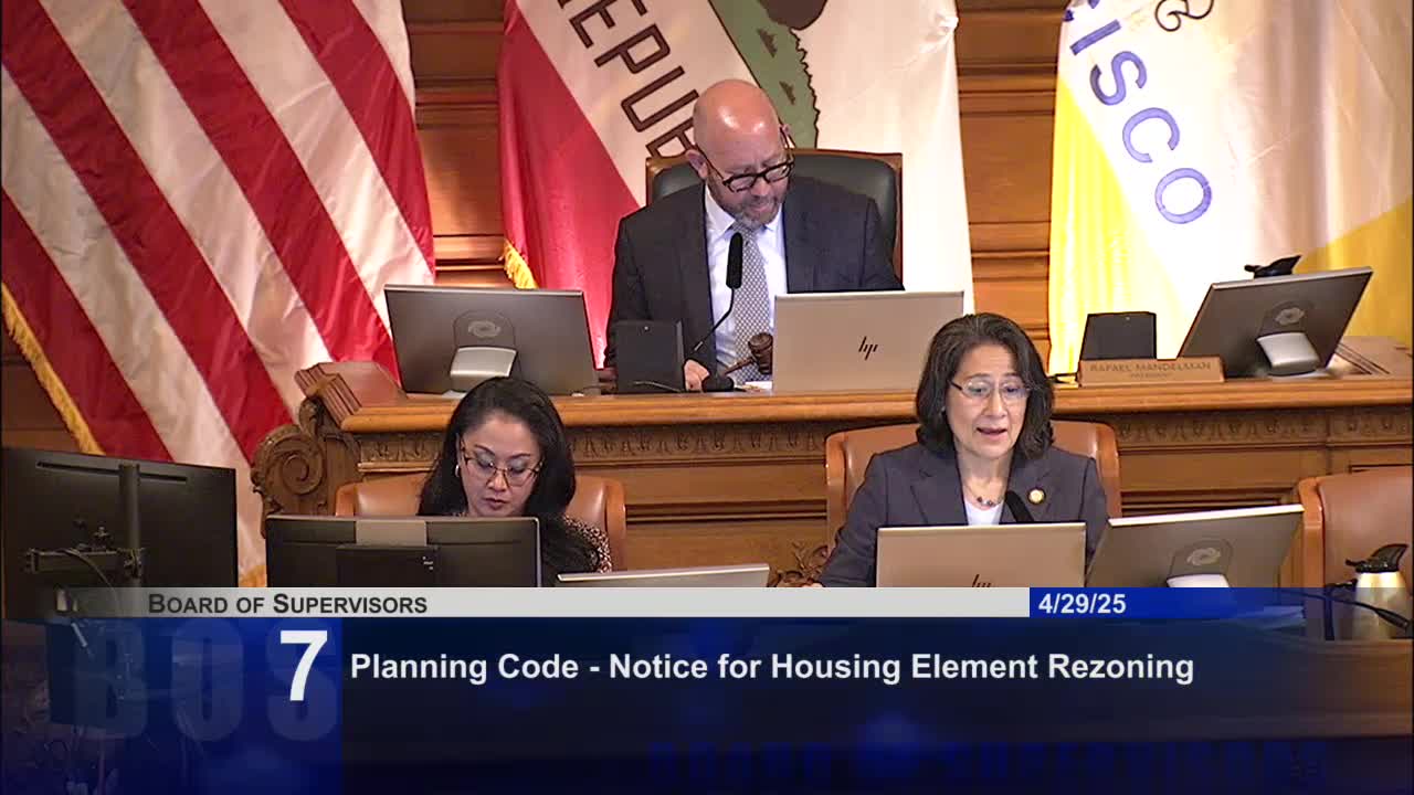 Board approves Planning Code change to require notice for rezoning to comply with housing element law