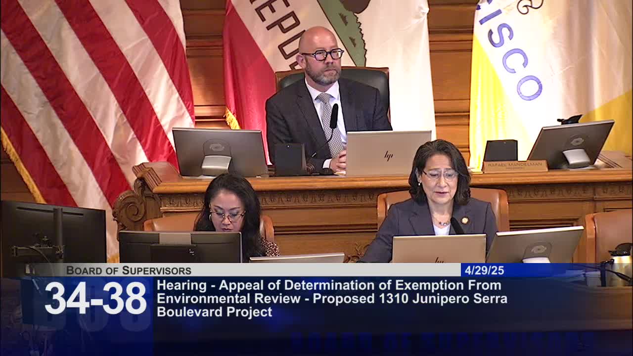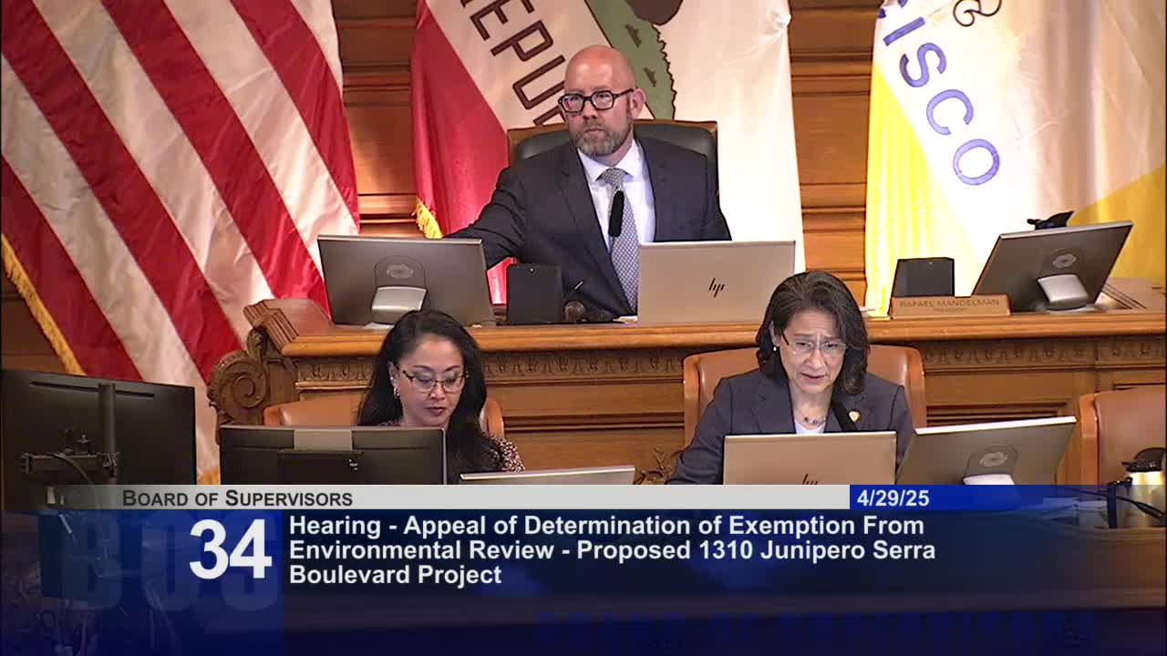 Board continues CEQA and conditional‑use appeal for 1310 Junipero Serra Boulevard to May 13