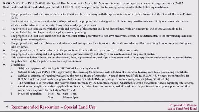 Council approves conditional rezoning and special-use for oil-change business near Empowerment Church on Southfield Road