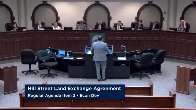 Council authorizes Hill Street land-exchange resolution to advance mixed-use redevelopment
