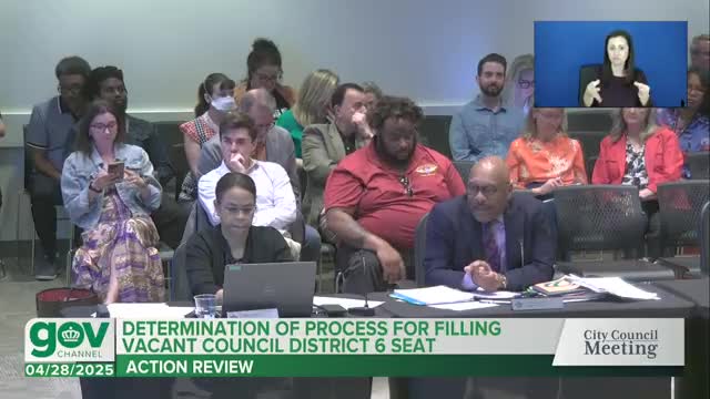 Council adopts application process to fill vacant District 6 seat; appointment set for May 19, swearing June 2