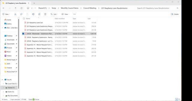 Council conditionally approves minor subdivision at 221 Raspberry Lane; developer to defer some fees until development