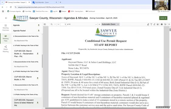 Sawyer County zoning committee renews multiple nonmetallic mining permits, approves reclamation plans