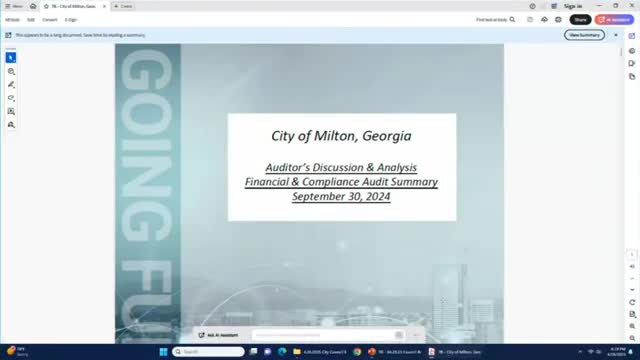 Auditors give Milton an unmodified opinion for FY2024; general fund remains a healthy reserve
