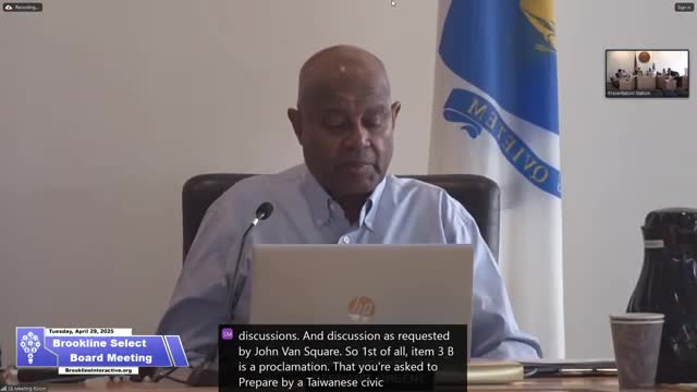 Select Board proclaims May 11–18, 2025 Taiwanese American Heritage Week in Brookline