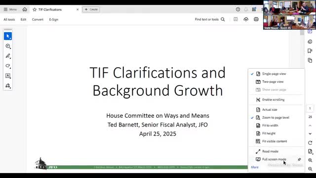Ways & Means hears briefing on tax-increment financing, background growth rates and reappraisal effects on education revenue