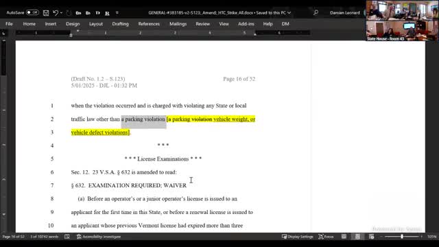 Committee updates Section 11 to align CDL deferral rules with DUI bill; no formal vote taken