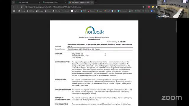 Commission approves amended final plat for Hughes Century Crossing Plat 10 to correct easement