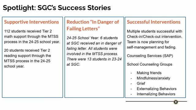 District reports declines in office discipline referrals and expanded MTSS supports at secondary schools