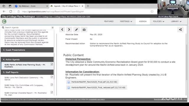 College Place commission recommends Martin Airfield planning study for inclusion in comprehensive plan