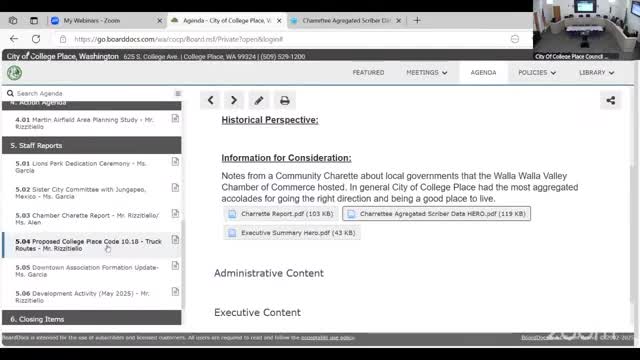 College Place staff proposes adding truck‑route designations to municipal code to unlock freight grants