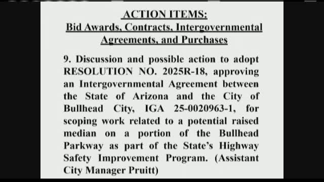 Council approves ADOT scoping agreement for Bullhead Parkway median; officials outline funding split and next steps