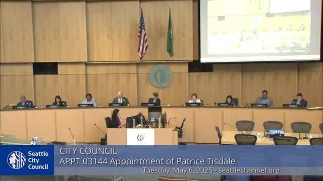 Council adopts consent calendar; confirms Patrice Tisdale to Labor Standards Advisory Commission