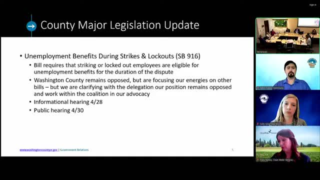 Washington County reaffirms opposition to strike‑pay bill amid internal disagreement over public statements