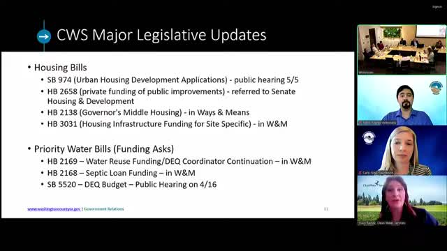 Clean Water Services briefs county on housing‑infrastructure bills; county will track DEQ and LCDC rulemaking