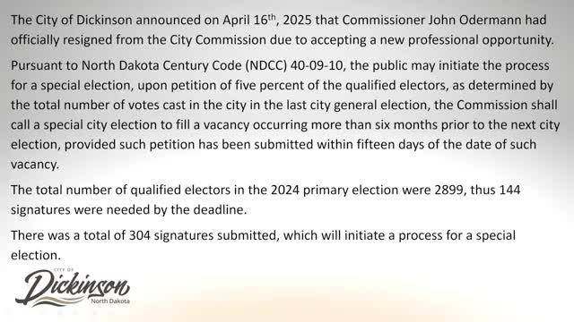 Dickinson Commission calls special election Aug. 18 to fill vacated seat