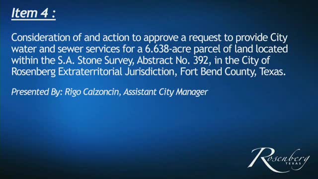 Developer seeks Rosenberg water and sewer for 6.638-acre ETJ site; council presses for annexation or development agreement