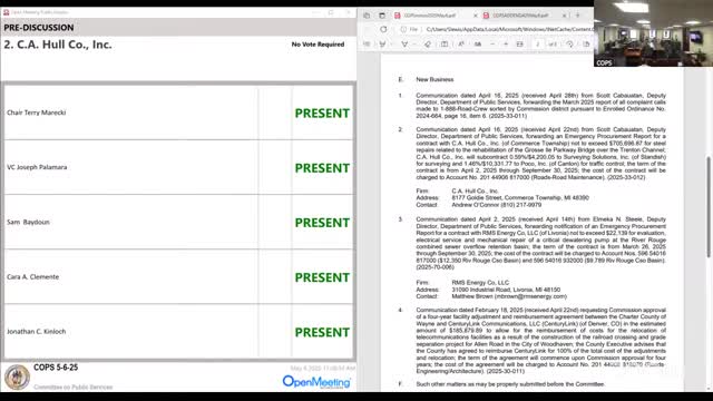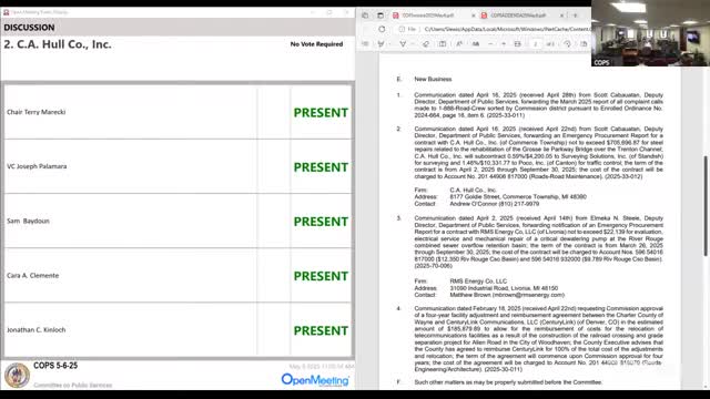 Wayne County notifies committee of emergency repairs to River Rouge CSO dewatering pump; RMS Energy contracted