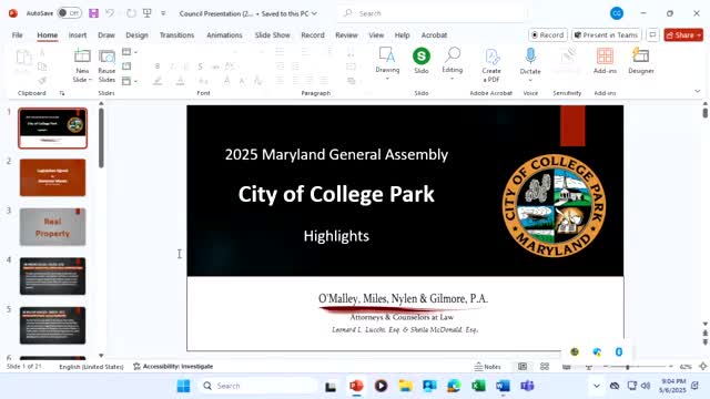 City lobbyist summarizes Maryland General Assembly session and funding wins for College Park