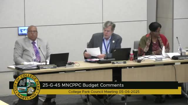 Council authorizes mayor to send comments on county planning budget, cites North College Park center and park needs