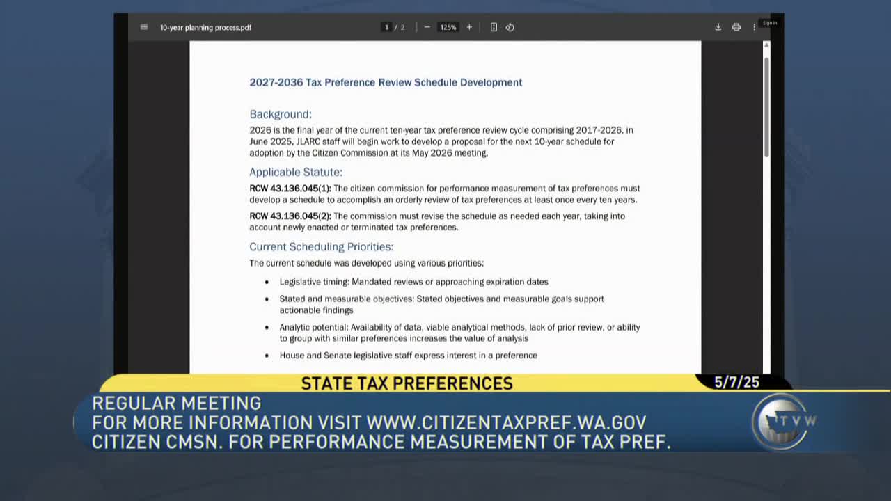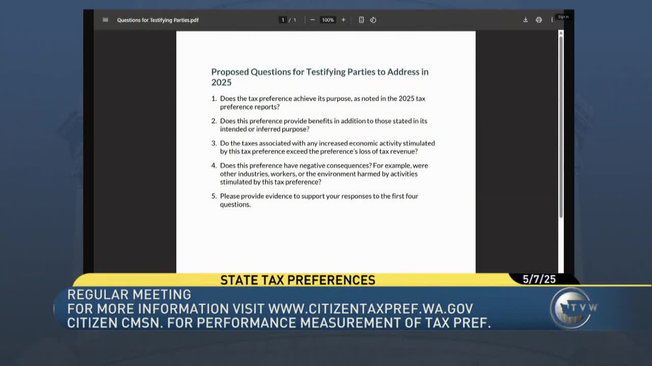 Citizen Commission approves testimony questions for 2025 tax-preference reviews