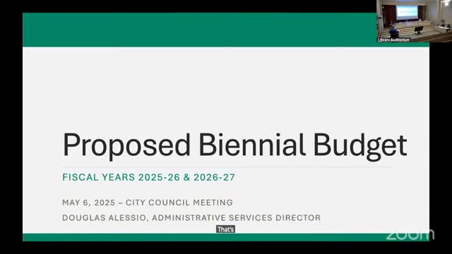 Council reviews proposed FY25‑26/FY26‑27 biennial budget and five‑year CIP; staff proposes transfers to CIP and risk reserves