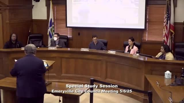 Emeryville study session projects $9.7M to $14.6M five‑year general fund shortfall; council told to consider reserves, revenue measures, cuts