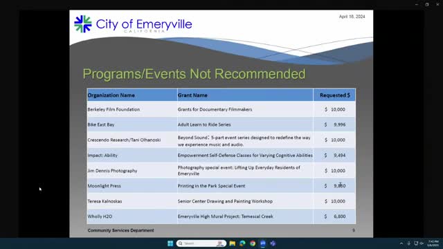 Emeryville council adopts $73,500 in community promotion grants for arts, youth, history and fitness programs
