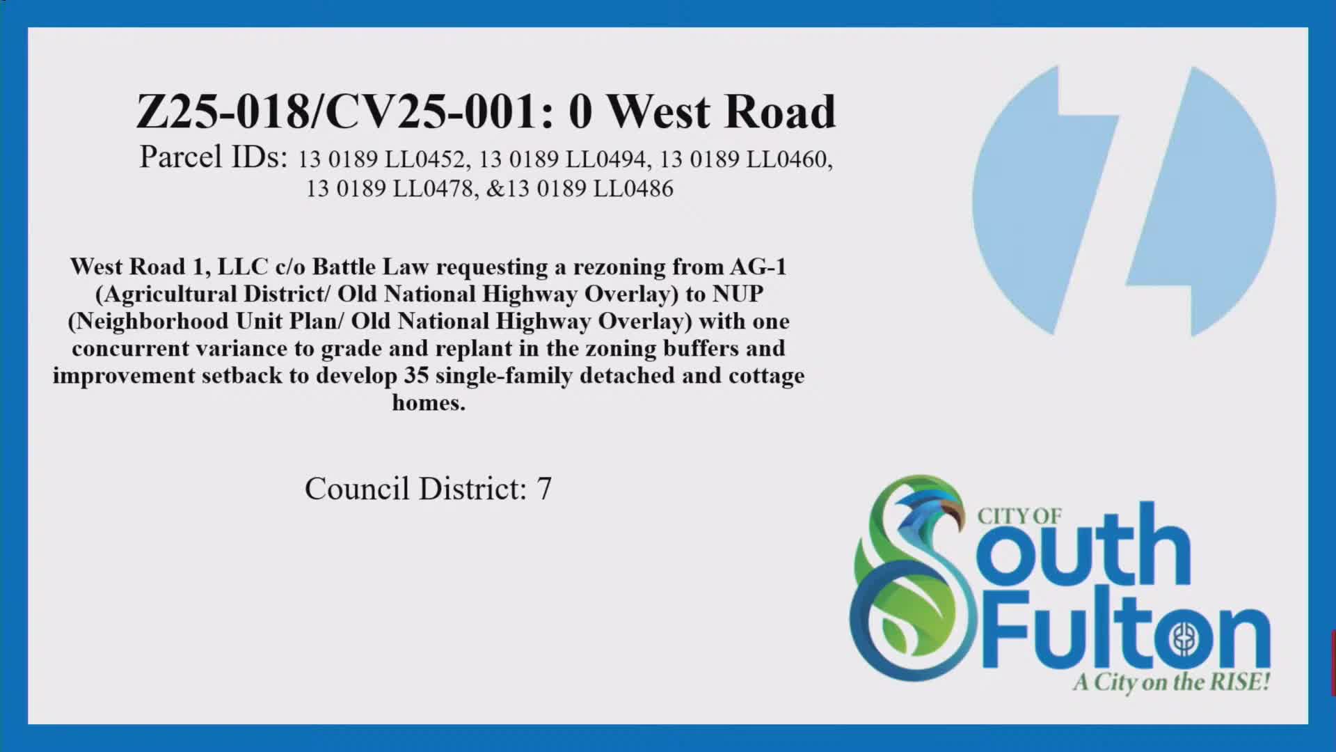 Applicant seeks NUP rezoning and a buffer variance for 35‑home West Road development