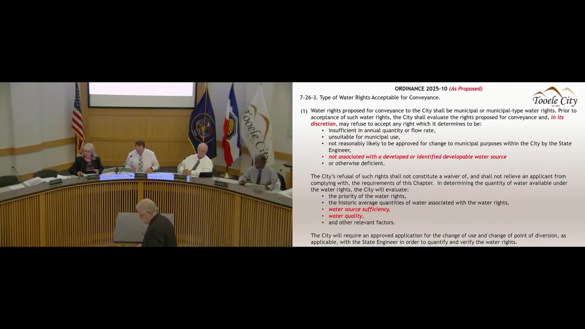 Tooele considers temporary ordinance to tighten review of developer‑provided water rights