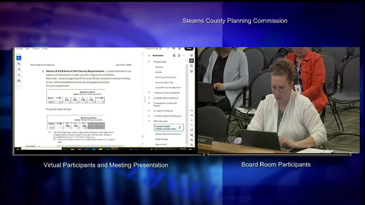 Planning commission backs proposed feedlot ordinance revisions; begins work on consistent outdoor-music conditions