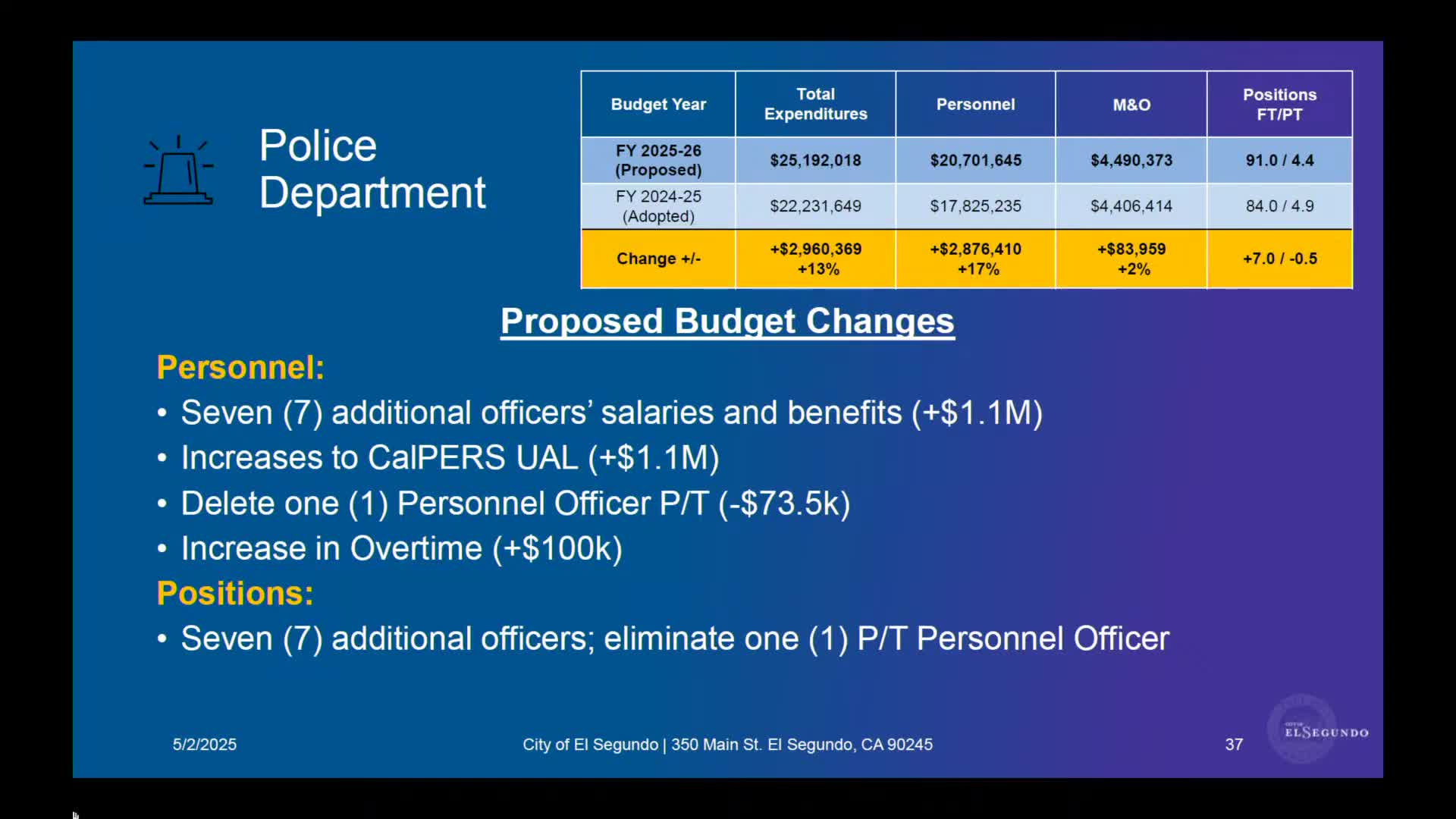 El Segundo council narrows police hiring plan; budget still includes seven new officer positions