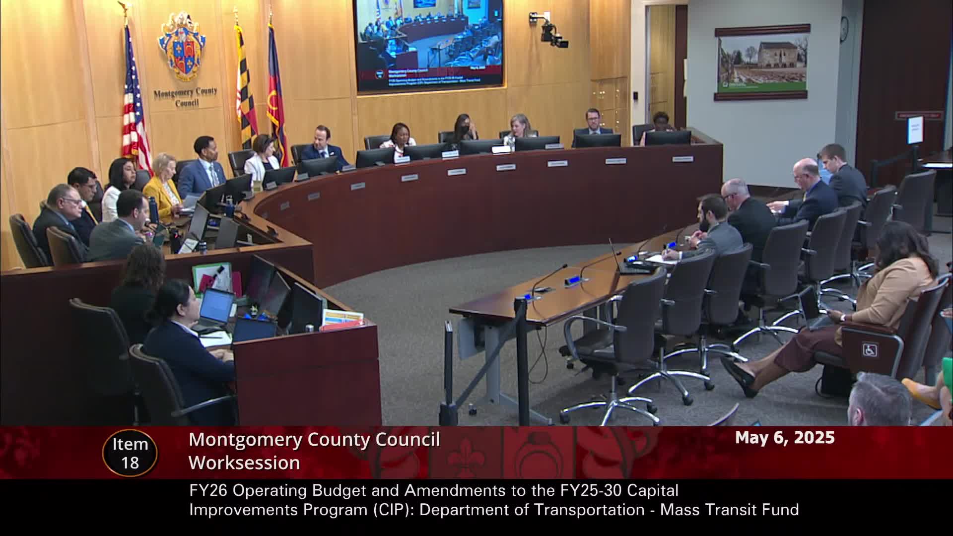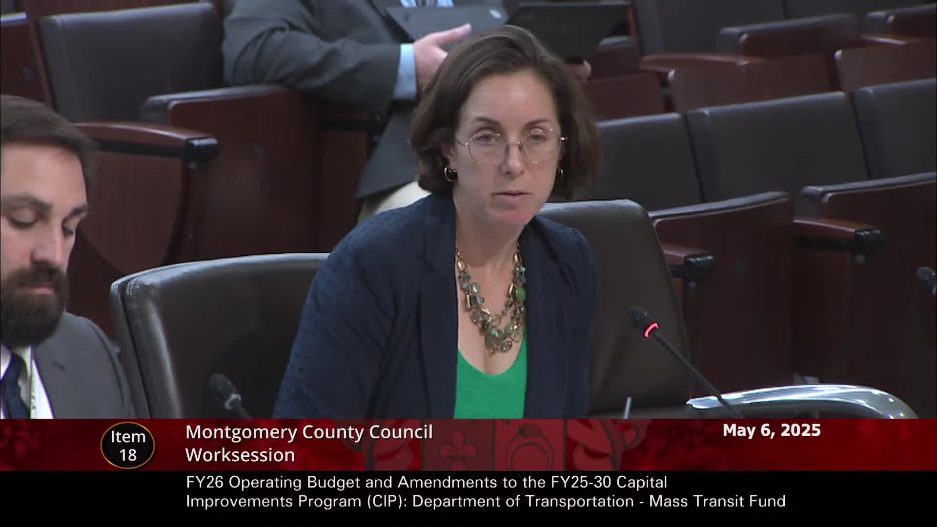 Mass Transit Fund and BRT projects adjusted in FY26 plan; ride-on fleet and fare equipment spending reduced
