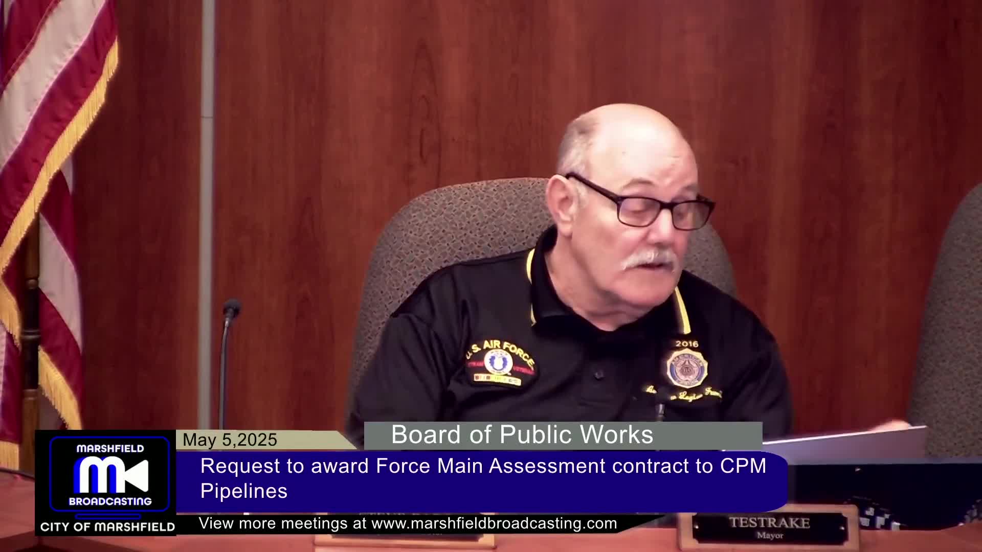 Board awards force‑main condition assessment to CPM Pipelines for $245,000